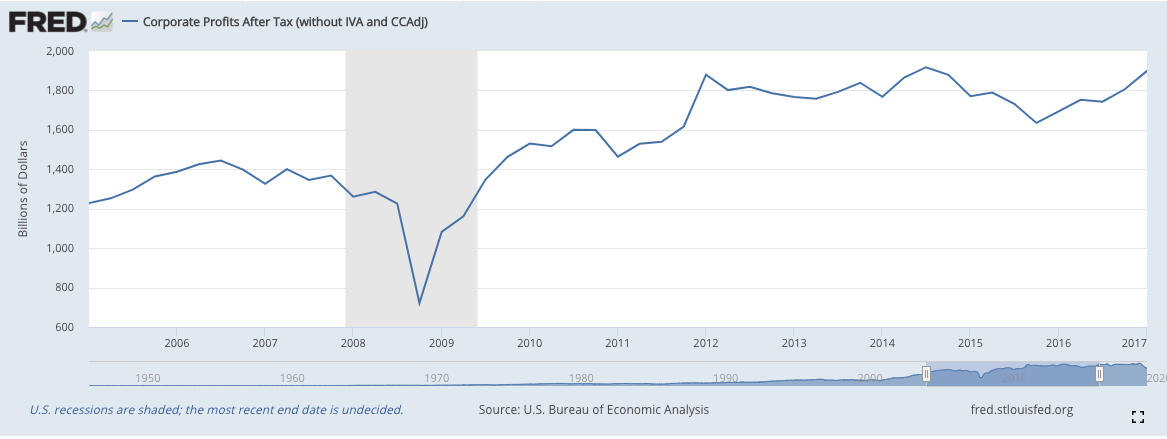 (Corporate profits before, during, and after the Great Recession. Chart by St. Louis Fed)