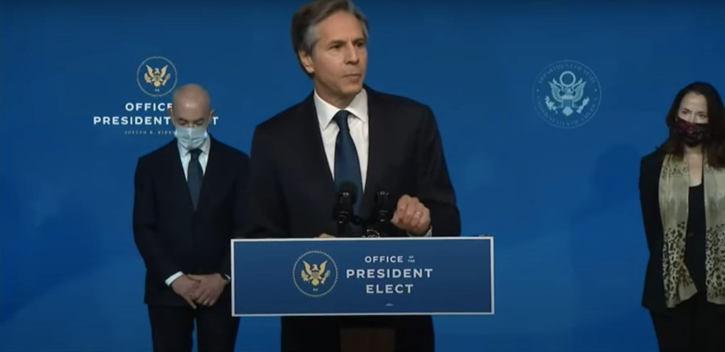 (Secretary of State nominee Antony Blinken speaks at a November 24 press conference. Photo: Screenshot/YouTube/fair use)