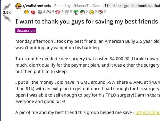 “I can now write my mom a check and put my sister through lymes treatment,” another wrote, posting a screenshot showing he made more than $64,000 from Gamestop. “This has been a rough year, I’m so thankful for every single one of you.”