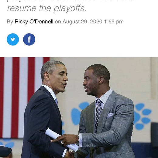 Earlier this year, when star players on teams competing in the NBA playoffs refused to play in protest of Kenosha, Wisconsin police shooting Jacob Blake seven times in the back in front of his children, it looked as if the entire league was on the precipice of a wildcat strike. And because it was near the end of August and calls for a general strike on the first of the month had been intensifying since March, an NBA playoff strike could have been the catalyst for a nationwide general strike. But right at the critical moment, Obama called NBA Players’ Association president Chris Paul and NBA all-star LeBron James, and broke the strike by convincing them to focus the remainder of the playoffs on registering young people to vote.